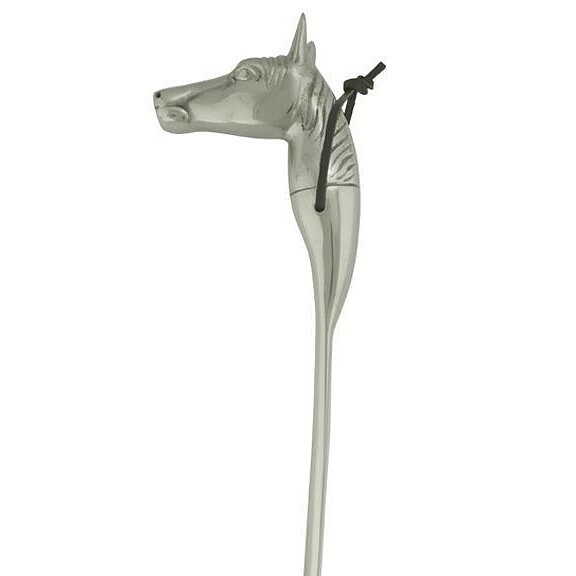 Elegant skohorn i blankpolerat aluminium som är lika stilfullt som användbart. Skaftet på detta unika skohorn har formen av en häst och blir genast en blickfångare i hallen. Skohornet kan praktiskt hängas upp i änden av skaftet och på så vis blir en inredningsdetalj som förskönar en hel vägg.